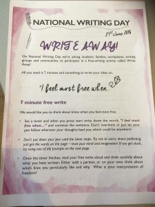 The idea of this challenge, shared with my by Sarah Davies (she who is super organised – I bet SHE knew it NWD today! 😀 ), is that we free write for 7 minutes on the theme, ‘I feel most free when…’